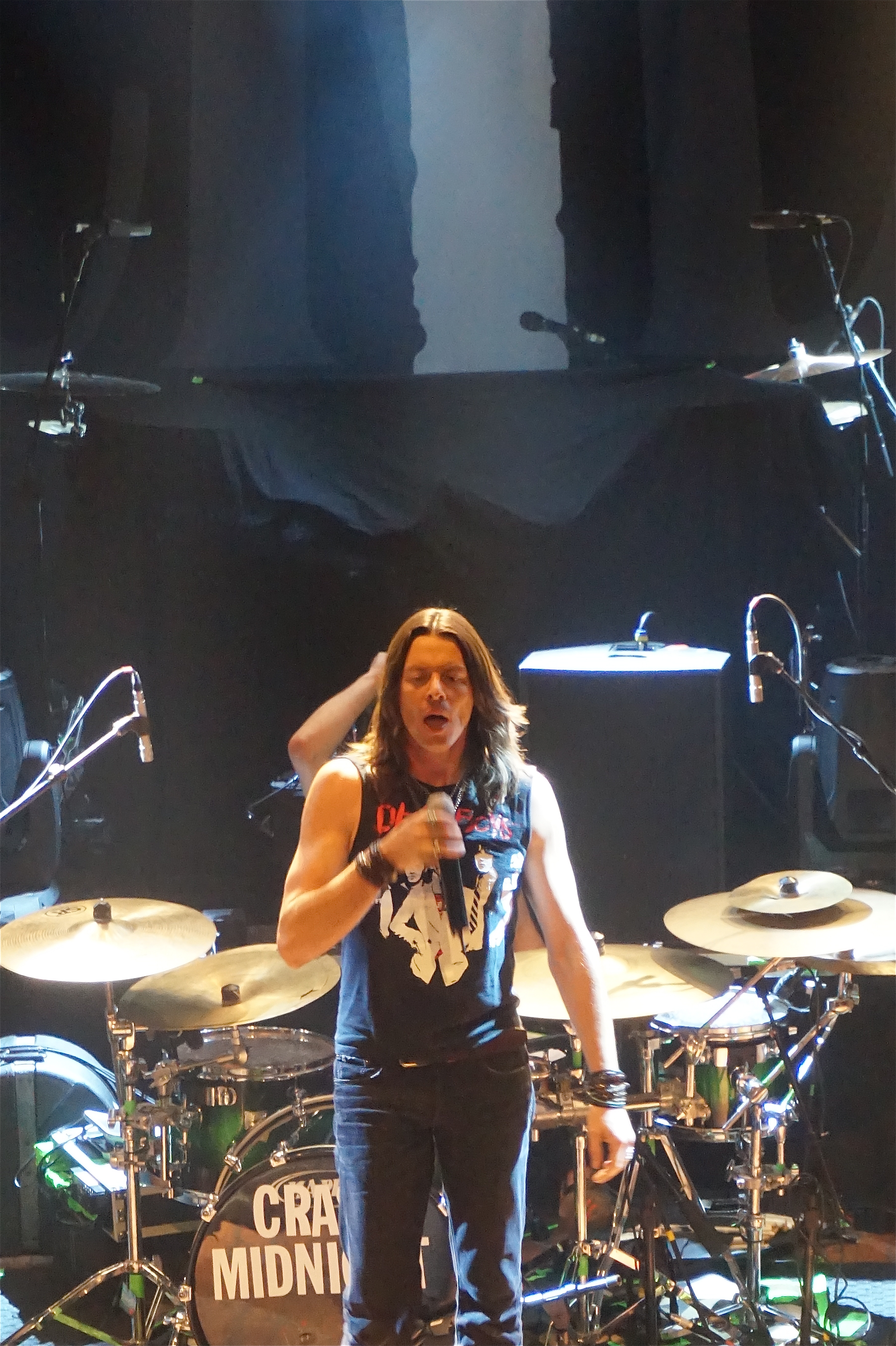 Crash Midnight, a five-piece rock band from Boston, took over the stage first with a performance that was both refreshing and welcomed. It’s easy for a talented band like Crash Midnight to get on stage and play their music, but it takes a remarkable band to get up on that stage and perform their music. Crash Midnight not only sounded strong and rich with vocals and guitar riffs to make anyone nostalgic for the 70s, but they also moved around the stage with intense energy and genuinely engaged with each other and the audience throughout each song. For example, the guitarist flipped his guitar over his back and proceeded to play it backwards while the the bassist continued to strum his strings while in a backward bend. The vocalist, Shaun Soho, moved all around the stage engaging with each member of the band which, in my humble opinion, made the band seem more like a band — their interactions with each other on stage actually made it seem like they like each other. Another unique aspect of their performance was that Soho would go backstage every time a song ended and only returned after the band would play the intro to the next song. I’d be interested to know why Soho does this, but in my opinion I think his momentary absences allowed the spotlight to briefly be on the instrumentals for a change instead of the vocals.